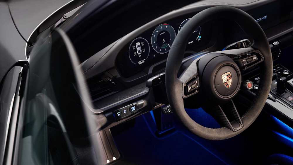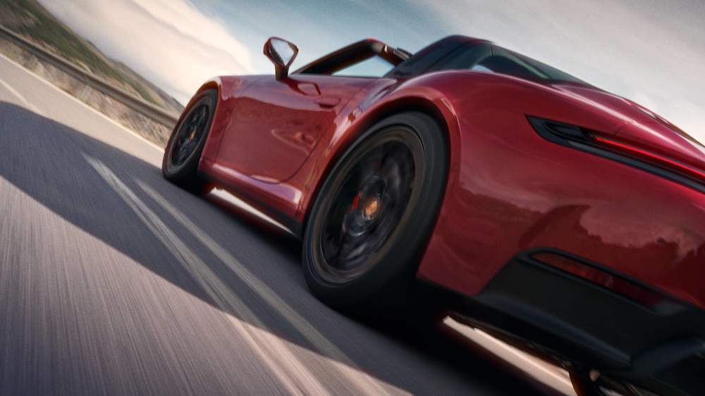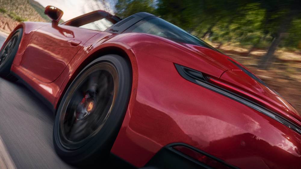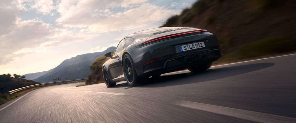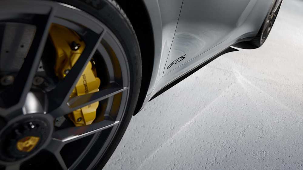 The rear-axle steering [3] included as standard with GTS models enhances performance and day-to-day usability in equal measure. At low speeds, it makes manoeuvring or turning easier. At higher speeds, it significantly increases driving stability. ( [3] - Not available for 911 Carrera )