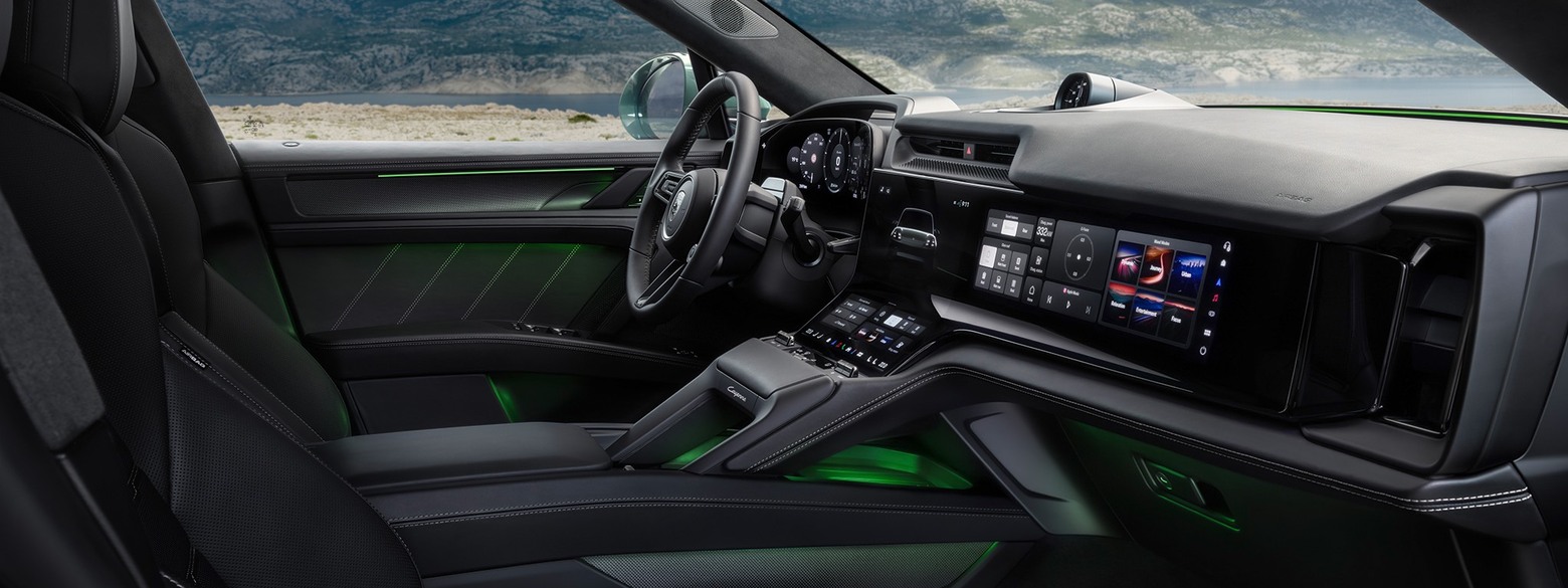 The largest display area in a Porsche, interactive mood modes and the new generation of seats offer a unique interior experience.